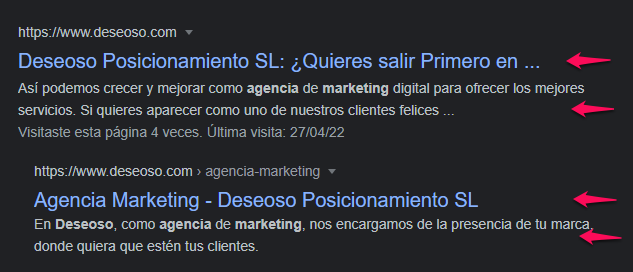 Cuando se realiza una búsqueda en Google lo primero que vemos de un sitio son las Meta Tags y la Meta Descripción, y en base a eso decidimos si entrar o no al sitio. Por este motivo, es muy importante utilizarlas de la manera correcta para que sean llamativas tanto para Google como para los usuarios.