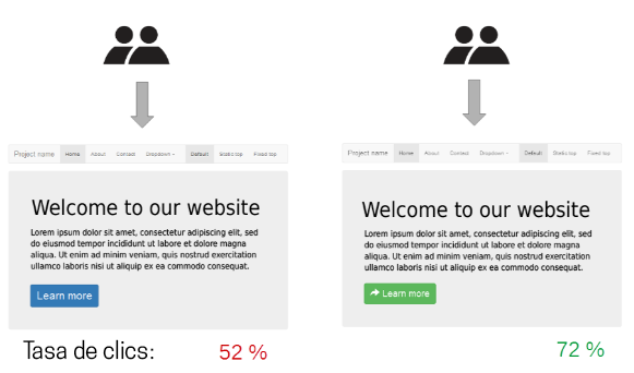 Se recomienda realizar diferentes pruebas con los CTA para ver qué funciona mejor. Hay casos en que el color del botón puede hacer la diferencia entre recibir más o menos clics. Por tal motivo hay que ir probando qué tipo de llamado a la acción da mejor resultados. Mira en el ejemplo siguiente cómo cambió la tasa de clics según el color del botón.
