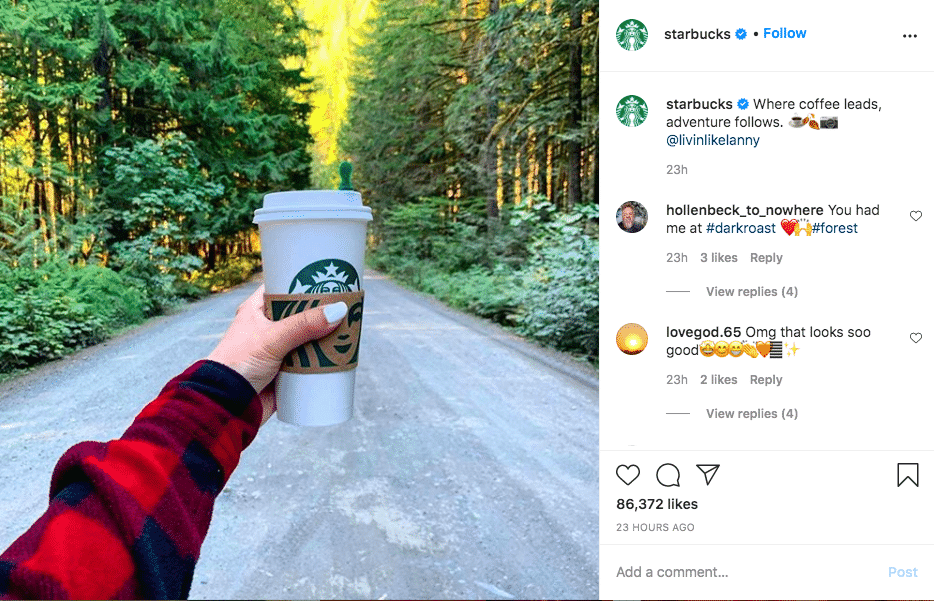 Un ejemplo de esta estrategia es lo que hizo Starbucks en Instagram donde compartía imágenes de sus clientes con sus productos.