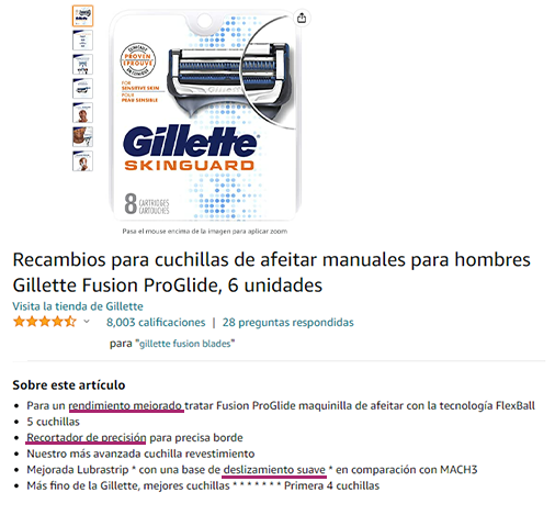 Observa este ejemplo de la marca Gillete: